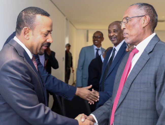 ፕረዚደንት ሙሰ ቢሒ ምስ ቀዳማይ ሚኒስተር ኣብይ ኣሕመድ ኣብ ዝገብሮ ርክብ፣ ብዛዕባ’ቲ ኣብ 2019 ኣብ ስምምዕ ተበጺሕ ግና ዛጊት ኣብ ግብሪ ዘይወዓለ፣ ዋንነት ብርኪ ኢትዮጵያ ኣብ ወደብ በርበራ ብዝምልክተ ከምዝዝትዩ እተን መርበባት ንምንጭታተን ብምጥቃስ ኣቃሊሐን።