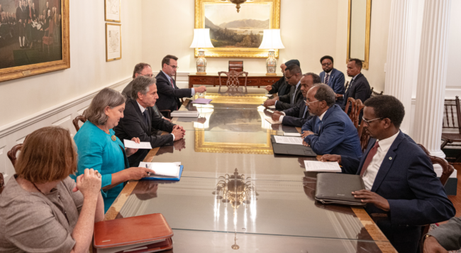 ኣብ ኣመሪካ ምብጻሕ ዘካይድ ዘሎ ፕረዚደንት ሓሰን ሸኽ ማሕሙድ፣ ምስ ኣማኻሪ ጸጥታ ምምሕዳር ባይደን፣ ሊዝ ሸርዉድ ራንዳል ኣብ ዝገበሮ ርክብ፣ ኣመሪካ ኣብ ምምላስ እቶም ኣብ ኤርትራ ን 3 ዓመታት ተዓጊቶም ዘለዉ ወትሃደራት ክትተሓባበሮም ሓቲቱ።