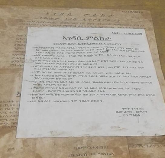 ኣብ ከባቢ መርሓኖ ዝርከብ ኣብያተ ሸቐጥ ኢትዮጵያውያን ክሳብ 3 መጋቢት ኣብ ዘሎ ግዜ ናብ ከባቢ ዓዲ ኣቤቶ ክግዕዝ ትእዛዝ ተመሓላሊፉ።