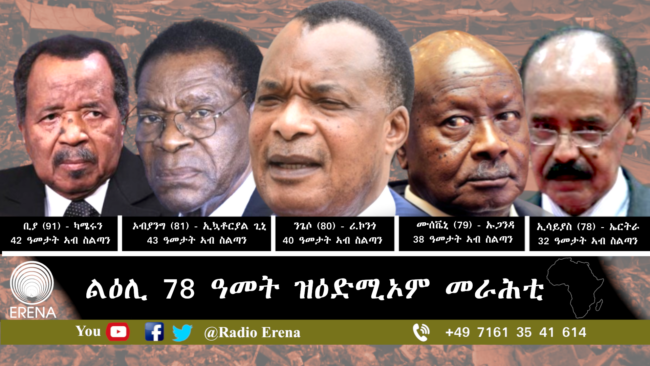 91 ዓመት ዝዕድምኡ ፕረዚደንት ካሜሩን፣ ፖል ቢያ፣ ነታ ሃገር ን42 ዓመታት ክመርሓ እንከሎ፣ ወዲ 81ዓመት ኮይኑ ዘሎ ፕረዚደንት ኢኳቶርያል ጊኒ፣ ቴዶር ኦብያንግ ድማ ን43 ዓመታት ኣብ ስልጣን ኣሎ።