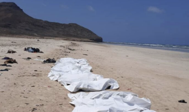 ካብ ገማግም ባሕሪ ጂቡቲ ዝተበገሱ፣ 34 ስደተኛታት ሃገራት ቀርኒ ኣፍሪቃ፣ ኣብ ባሕሪ ጥሒሎም ከምዝሞቱ፣ ኣህጉራዊ ማሕበር ስደተኛታት -IOM ብ12 ሚያዝያ ሓቢሩ።