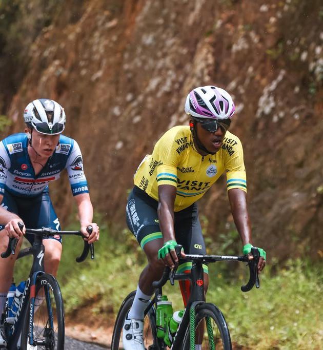 ዙር ርዋንዳ፡ ሎሚ ቀዳም 25 ለካቲት 2023፡ ካብ ከተማ ኒያማታ ናብ ከተማ ኪጋሊ 115.8 ኪሎ ሜትር ብዝሸፈነ ርሕቐት ሻብዓይ መድረኽ ኣብ ዘሳለጠሉ፡ ኤርትራዊ ተቐዳዳማይ ኢጣልያዊት ፕሮኮንቲነንታል ቲም Green Project-Bardiani CSF-Faizanè ሄኖክ ሙሉብርሃን፡ ብውህሉል ግዜ ዝመርሕ ተወዳዳራይ ንዝለብሳ ብጫ ማልያ፡ ካብ ኢድ በልጅዩማዊ ተቐዳዳማይ ኮንቲነንታል ክለብ Soudal – Quick-Step Devo ዊልያም ጁንየር ሌሰርፍ መንዚዑ ኣብ ትሕቲ ቑጽጽሩ ኣእትይዋ።