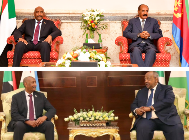 እቲ ጀነራል፡ ኣብቲ ዛጊት ናብ ኤርትራን ጂቡቲን ኣካይድዎ ዘሎ ዑደት ምስ ፕረዚደንታት ኣቶ ኢሳይያስ ኣፈወርቂን እስማዒል ዑመር ገለን ብምርኻብ፡ ኣብ ህሉው ምዕባለታት ሱዳንን እተን ሃገራት ክወስዶ ዘለወን ተበግሶታትን ብዝምልከት ተመያይጡ።